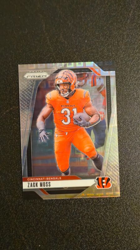 The Zack Moss 2024 Prizm #56 Lazer card is 1 of 83 Zack Moss' card variations in the 2024 Prizm set being tracked by Sports Card Investor, including Base, Choice Blue Yellow Green, Choice Silver, Disco, and Green.