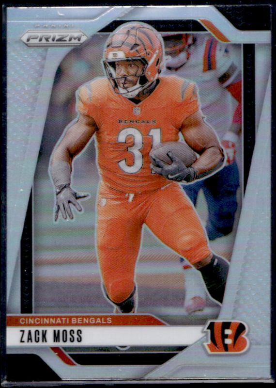 The Zack Moss 2024 Prizm #56 Silver card is 1 of 83 Zack Moss' card variations in the 2024 Prizm set being tracked by Sports Card Investor, including Base, Choice Blue Yellow Green, Choice Silver, Disco, and Green.