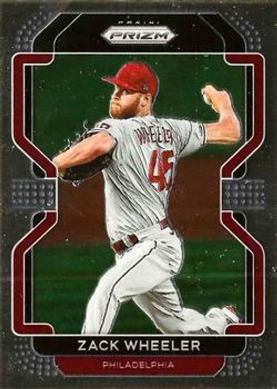 The Zack Wheeler 2022 Prizm #222 Base card is 1 of 38 Zack Wheeler's card variations in the 2022 Prizm set being tracked by Sports Card Investor, including Blue, Blue Velocity, Carolina Blue, Cosmic Haze, and Giraffe.