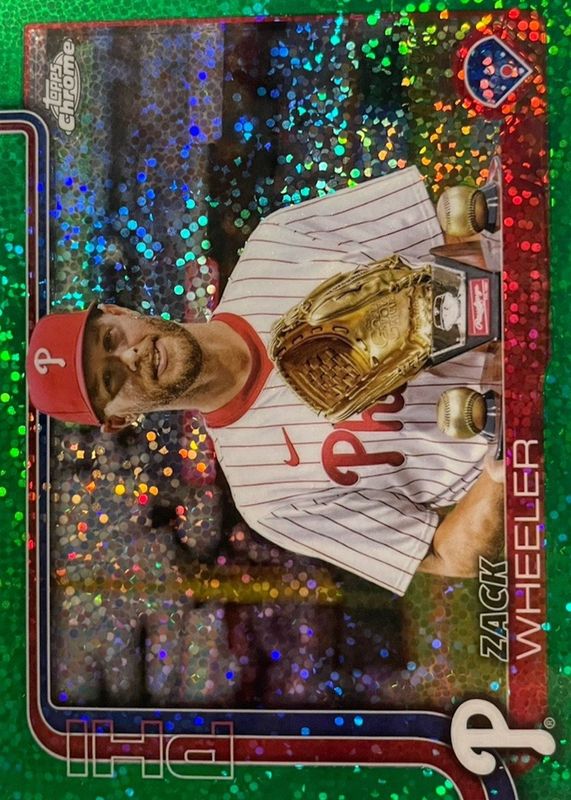 Best Prices Available For Sale of Zack Wheeler 2025 Topps Chrome #189 Image Variation - Green Speckle Refractor /99