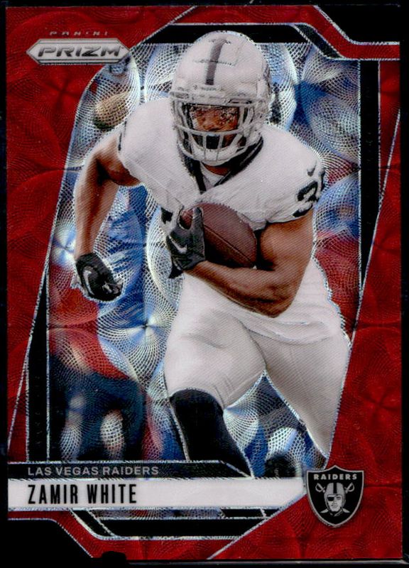 The Zamir White 2024 Prizm #149 Choice Red /20 card is 1 of 83 Zamir White's card variations in the 2024 Prizm set being tracked by Sports Card Investor, including Base, Choice Blue Yellow Green, Choice Silver, Disco, and Green.