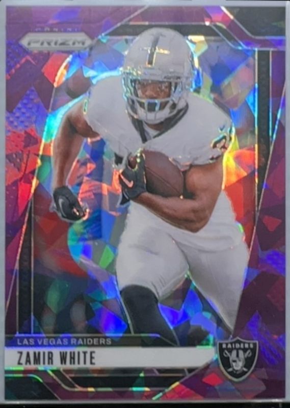 The Zamir White 2024 Prizm #149 Purple Ice /225 card is 1 of 83 Zamir White's card variations in the 2024 Prizm set being tracked by Sports Card Investor, including Base, Choice Blue Yellow Green, Choice Silver, Disco, and Green.