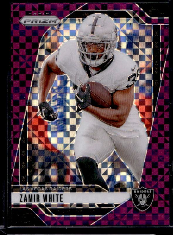 The Zamir White 2024 Prizm #149 Purple Power /49 card is 1 of 83 Zamir White's card variations in the 2024 Prizm set being tracked by Sports Card Investor, including Base, Choice Blue Yellow Green, Choice Silver, Disco, and Green.