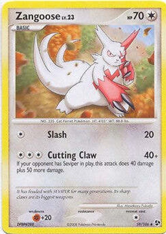 Best Prices Available For Sale of Zangoose 2008 Diamond & Pearl: Great Encounters #059/106 Base