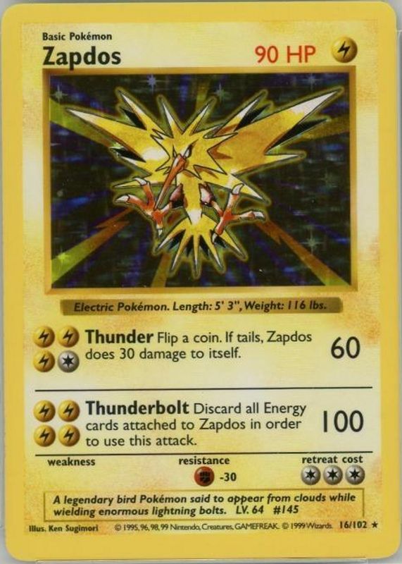 Best Prices Available For Sale of Zapdos 1999 Pokemon Game #16 Shadowless Holo