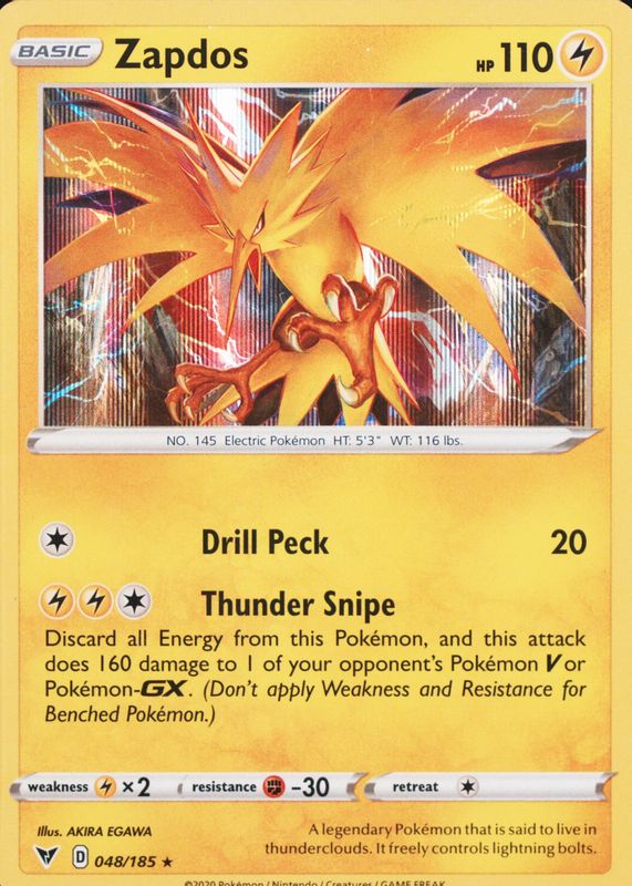 Zapdos 2020 Sword & Shield: Vivid Voltage #048/185 Holo RAW TCG (NEAR MINT) Price Guide