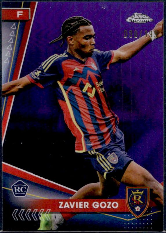 The Zavier Gozo 2024 Topps Chrome MLS #15 Purple Refractor /199 card is 1 of 26 Zavier Gozo's card variations in the 2024 Topps Chrome MLS set being tracked by Sports Card Investor, including Base, Aqua Lava Refractor, Gold Lava Refractor, Neon Green Lava Refractor, and Prism Refractor.