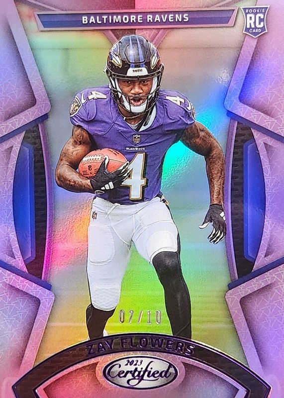 2023 Panini Certified Purple Zay Flowers Baltimore Ravens RC Rookie 1/10
