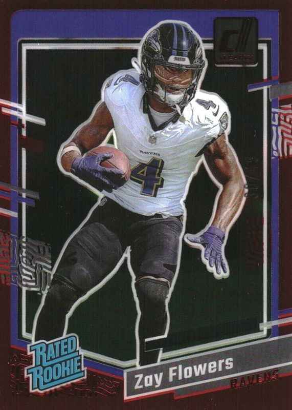 Zay Flowers 2023 Clearly Donruss Rated Rookie Red 17/49 #92 SP Ravens