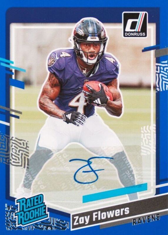 Auctions Ending Soon for Zay Flowers 2023 Donruss #307 Rated Rookie Autographs - Blue RAW