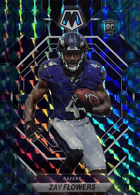 Auctions Ending Soon for Zay Flowers 2023 Mosaic #380 Choice Peacock /(SSP) Rookie RAW