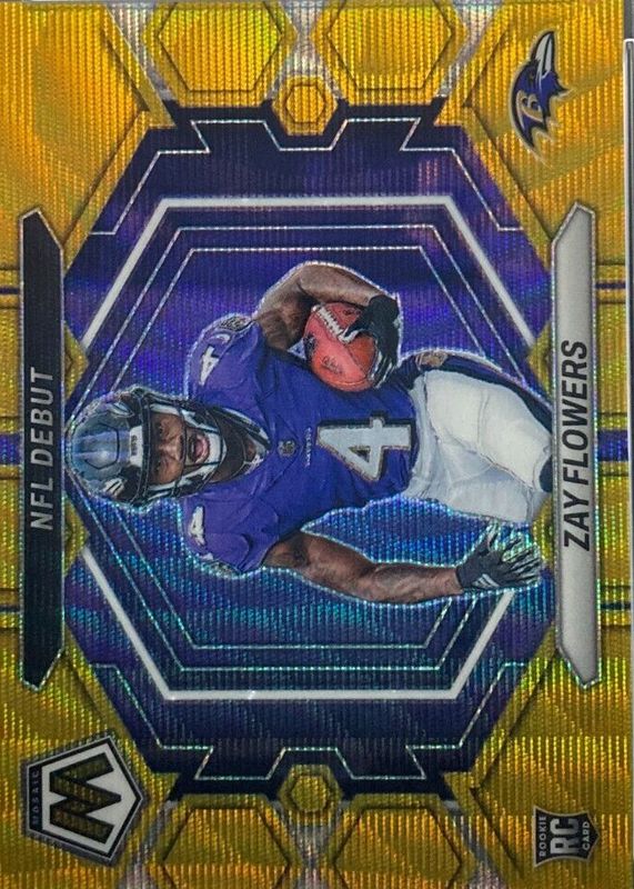2023 Mosaic Zay Flowers NFL Debut Gold Wave 02/17 RC #ND-18 Ravens