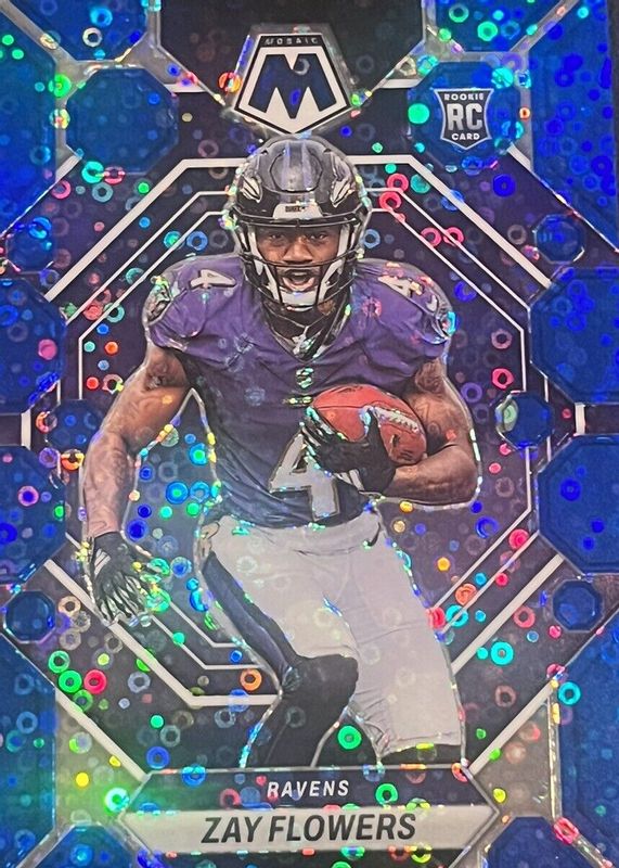 🔥 2023 Mosaic ZAY FLOWERS #380 Blue Prizm No Huddle ROOKIE #62/75 Ravens NFL