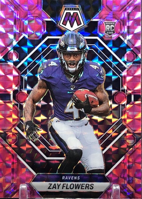 Zay Flowers Rookie 2023 Panini Mosaic Pink Camo RC #380 Great Condition!💥