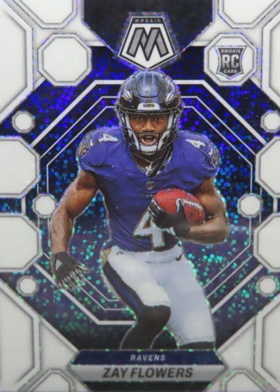 Auctions Ending Soon for Zay Flowers 2023 Mosaic #380 White Sparkle /(SSP) Rookie RAW