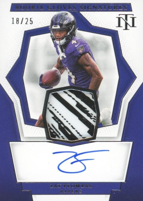 Zay Flowers 2023 National Treasures Rookie Gloves Signatures /25 On Card Auto