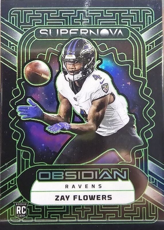 2023 Panini Obsidian Zay Flowers Supernova RC Green Electric Etch #20/35 Ravens