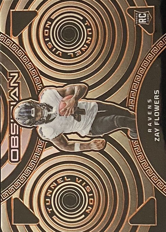 The Zay Flowers 2023 Obsidian #10 Tunnel Vision - Electric Etch Orange /65 Rookie card in Raw condition has not changed in price in the last 30 days and was last sold for $6.99 .