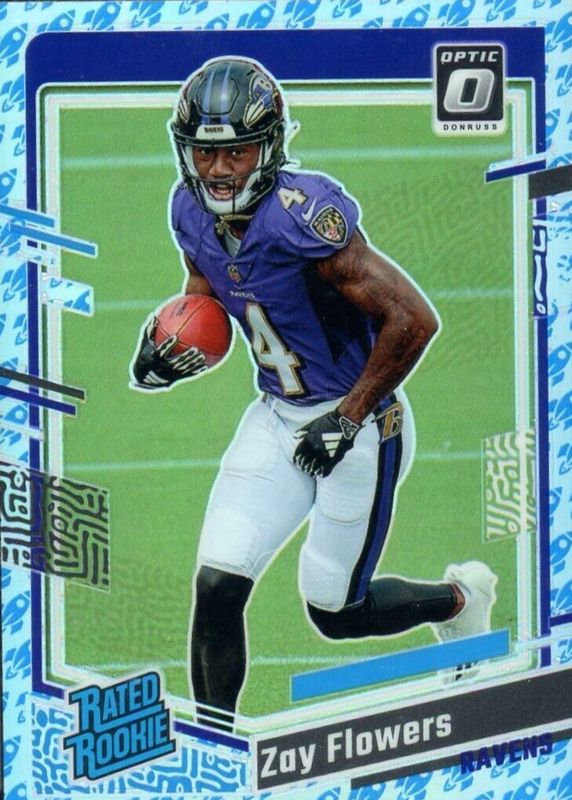 2023 Donruss Optic ZAY FLOWERS Rocket Emoji Prizm #210 Rated Rookie Ravens SSP