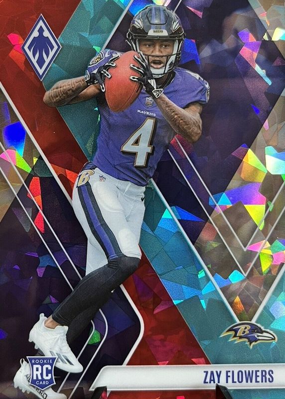 This card is 1 of 72 Zay Flowers' card variations in the 2023 Phoenix set being tracked by Sports Card Investor, including Base, Color Burst, Silver, Silver Seismic, and Fire Burst /340.