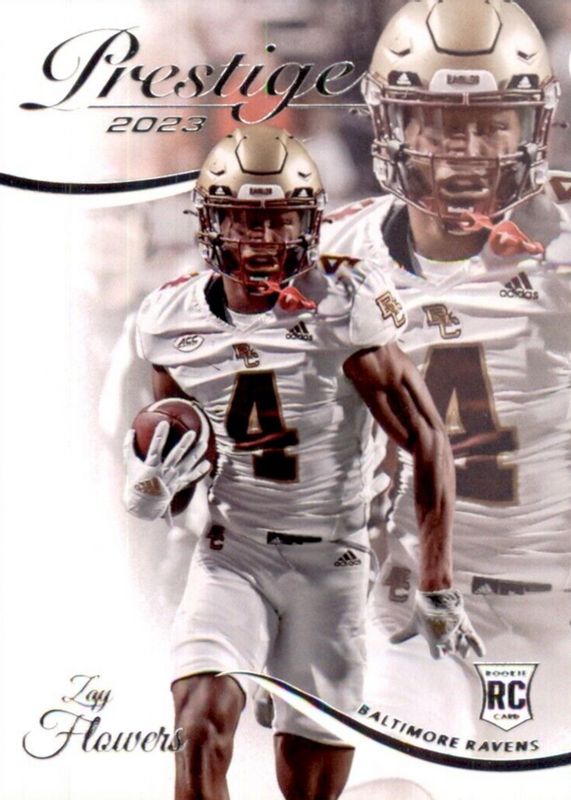 The Zay Flowers 2023 Prestige #390 Base Rookie card in Raw condition has moved up $0.09 (+6.4%) in the last 30 days and was last sold for $1.49 .