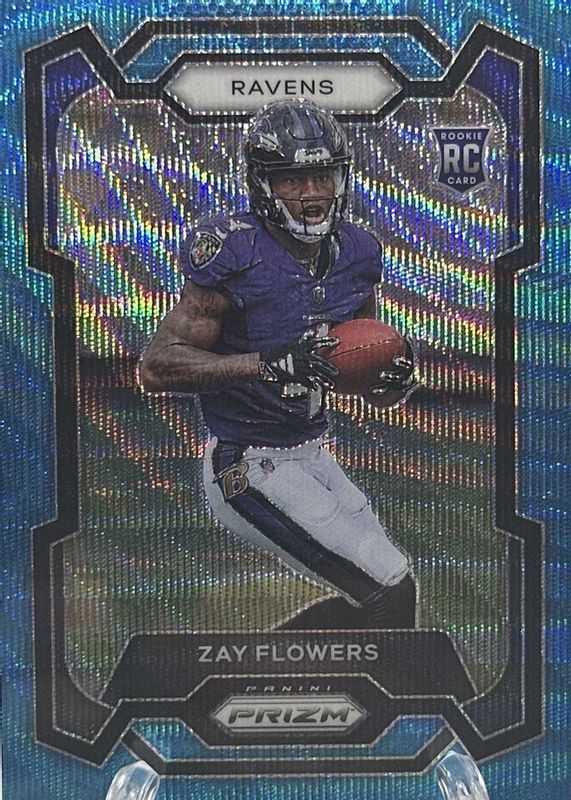 2023 Panini Prizm Zay Flowers Blue Wave /199 Rookie RC #307 NFL Baltimore Ravens