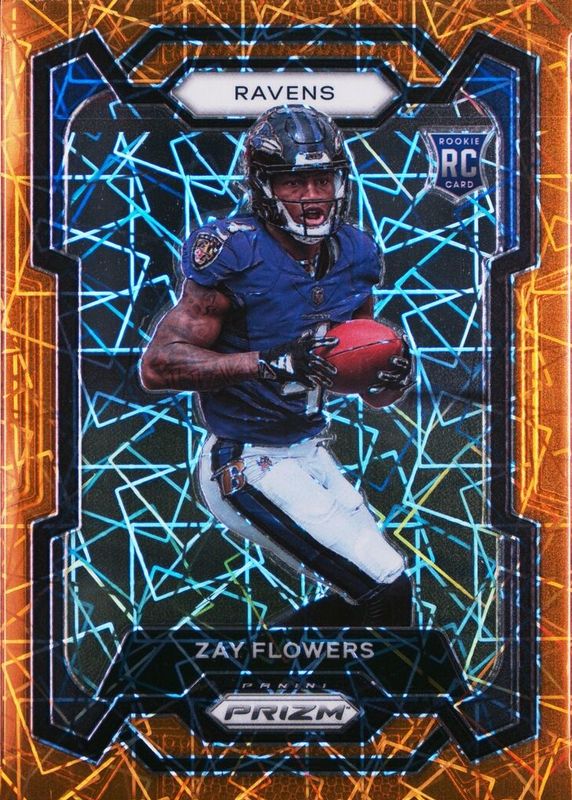 The Zay Flowers 2023 Prizm #307 Lazer Rookie card in Raw condition has moved down -$0.99 (-30.5%) in the last 30 days and was last sold for $2.26 .