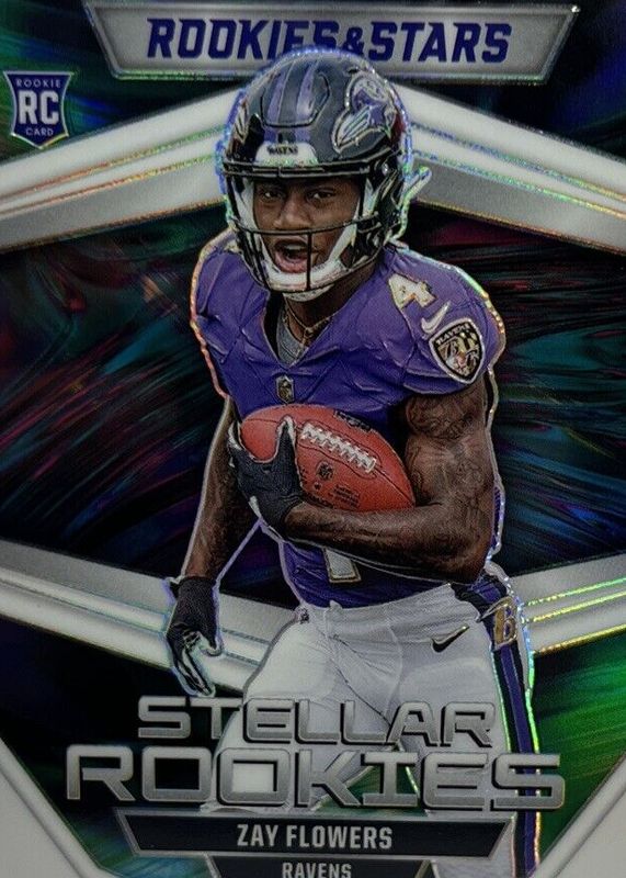 The Zay Flowers 2023 Rookies & Stars #SR-2 Stellar Rookies - White /149 card in Raw condition has not changed in price in the last 30 days and was last sold for $5.00 .