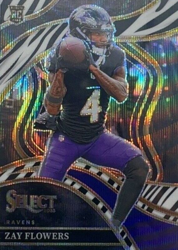 The Zay Flowers 2023 Select #201 Club Level Zebra /(SSP) Rookie card in Raw condition has not changed in price in the last 30 days and was last sold for $140.00 .