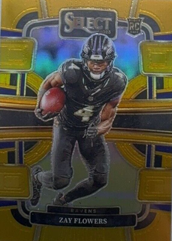 The Zay Flowers 2023 Select #8 Concourse Gold /10 Rookie card in Raw condition has not changed in price in the last 30 days and was last sold for $141.50 .