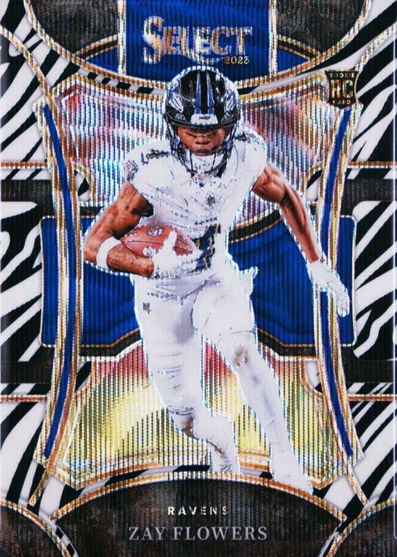 The Zay Flowers 2023 Select #408 Suite Level Zebra /(SSP) Rookie card in Raw condition has not changed in price in the last 30 days and was last sold for $61.00 .