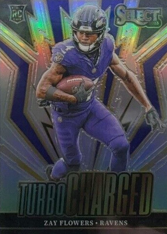 The Zay Flowers 2023 Select #TUR-ZFL Turbocharged - Silver Rookie card in Raw condition has not changed in price in the last 30 days and was last sold for $3.50 .