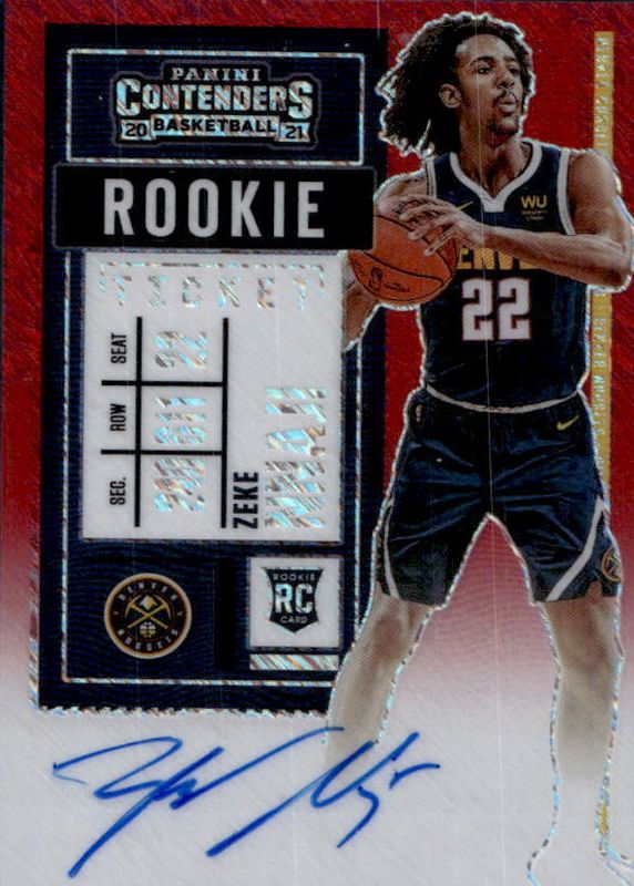 Zeke Nnaji 2020 Contenders #133 Rookie Ticket Auto - Premium Red Shimmer /5 (Blue Jersey) RAW Price Guide