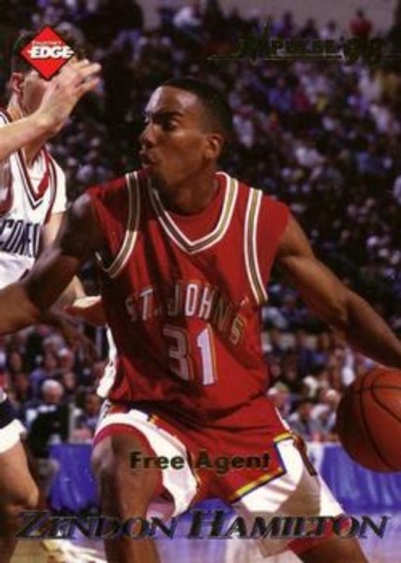The Zendon Hamilton 1998 Collector's Edge Impulse #24 Thick card is 1 of 8 Zendon Hamilton's card variations in the 1998 Collector's Edge Impulse set being tracked by Sports Card Investor, including Base, Jersey City '99, Jersey City '99 Gold /5000, Jersey City '99 SN50 /50, and Pro Signatures.