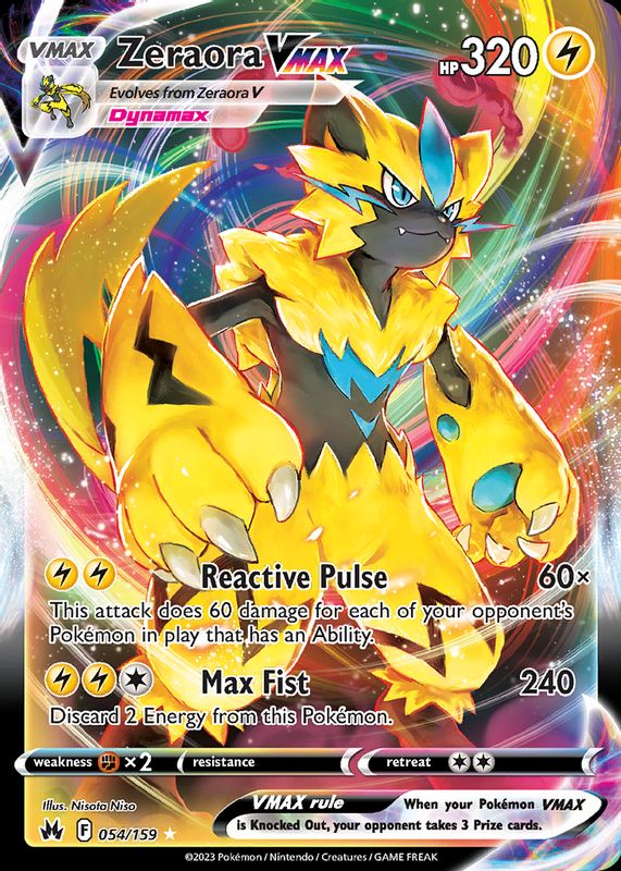 Pokemon TCG NM/M Zeraora VMAX 054/159 Crown Zenith