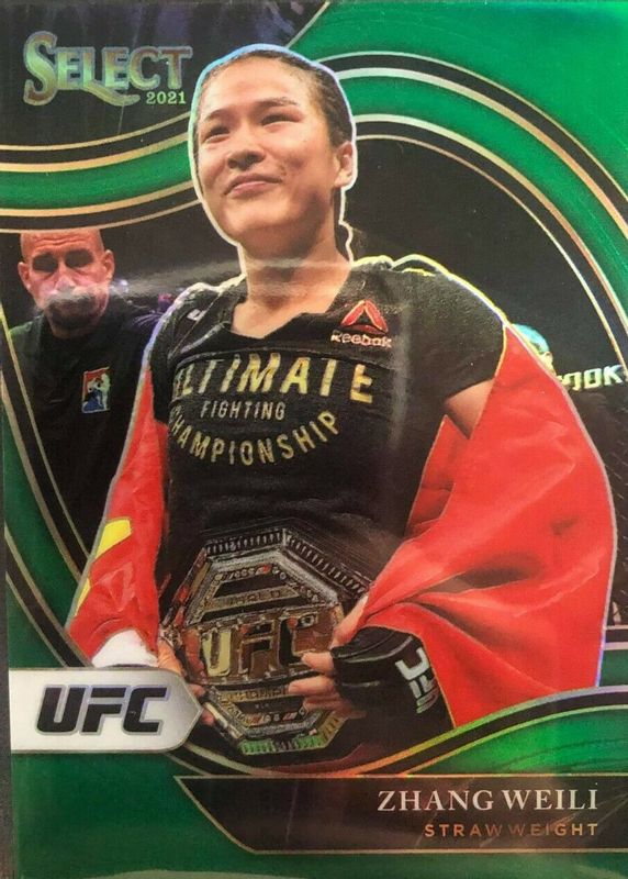 This card is 1 of 48 Zhang Weili's card variations in the 2021 Select UFC set being tracked by Sports Card Investor, including Concourse Disco, Concourse Scope, Concourse Silver, Concourse Tri-Color, and Octagonside Disco.