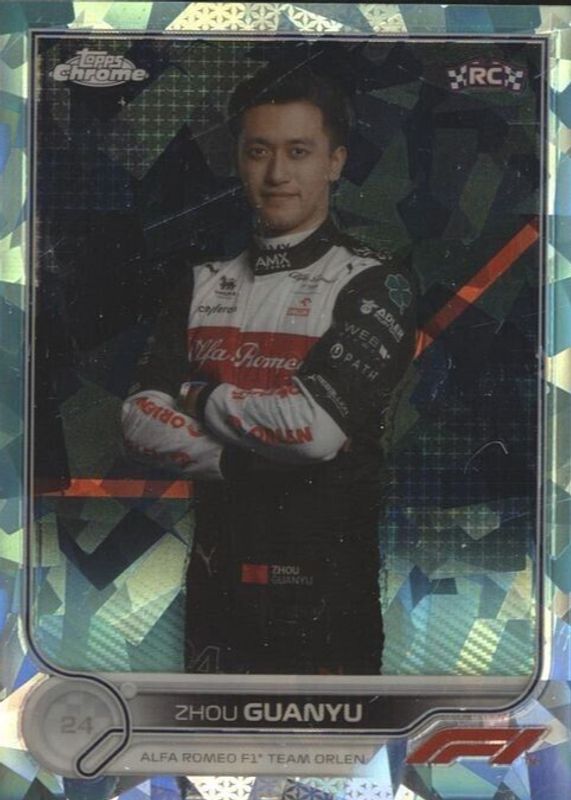 This card is 1 of 11 Zhou Guanyu's card variations in the 2022 Topps Chrome Formula 1 Sapphire Edition set being tracked by Sports Card Investor, including Base, Chartreuse /199, Sepia /100, Green /75, and Gold /50.