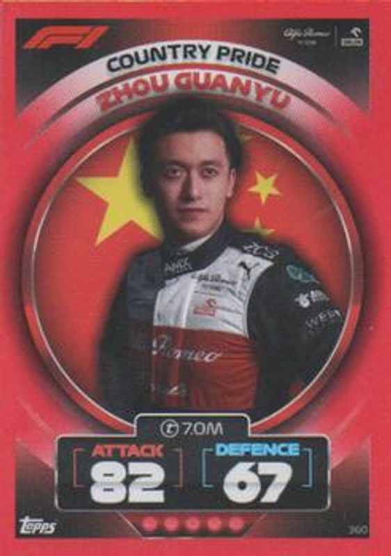 Zhou Guanyu 2022 Topps Turbo Attax Formula 1 #360 Rainbow Foil Red Indian Rookie RAW Price Guide