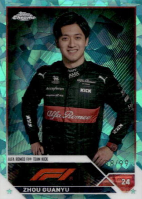 Best Prices Available For Sale of Zhou Guanyu 2023 Topps Chrome Formula 1 Sapphire Edition #58 Aqua /99