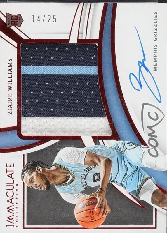 This card is 1 of 10 Ziaire Williams' card variations in the 2021 Immaculate set being tracked by Sports Card Investor, including Premium Patch Autographs (/50), Premium Patch Autographs - Gold (/10), Rookie Patch Auto - Jersey Number (/8), Rookie Patch Auto /99, and Rookie Patch Auto - Red /49.