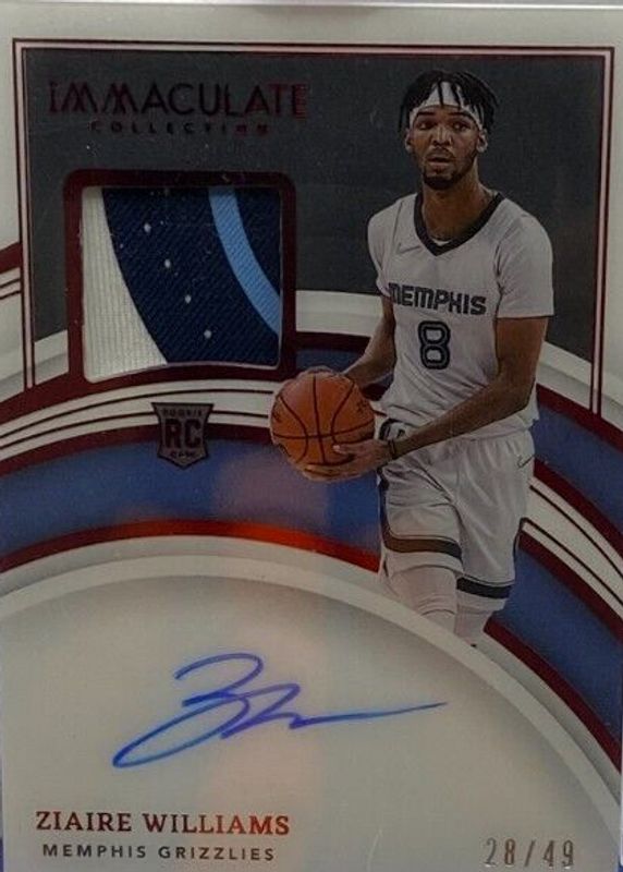This card is 1 of 10 Ziaire Williams' card variations in the 2021 Immaculate set being tracked by Sports Card Investor, including Premium Patch Autographs (/50), Premium Patch Autographs - Gold (/10), Premium Patch Autographs - Red (/25), Rookie Patch Auto - Jersey Number (/8), and Rookie Patch Auto /99.