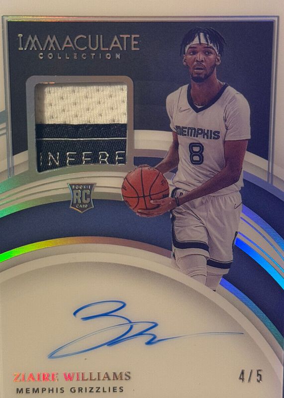 This card is 1 of 10 Ziaire Williams' card variations in the 2021 Immaculate set being tracked by Sports Card Investor, including Premium Patch Autographs (/50), Premium Patch Autographs - Gold (/10), Premium Patch Autographs - Red (/25), Rookie Patch Auto - Jersey Number (/8), and Rookie Patch Auto /99.