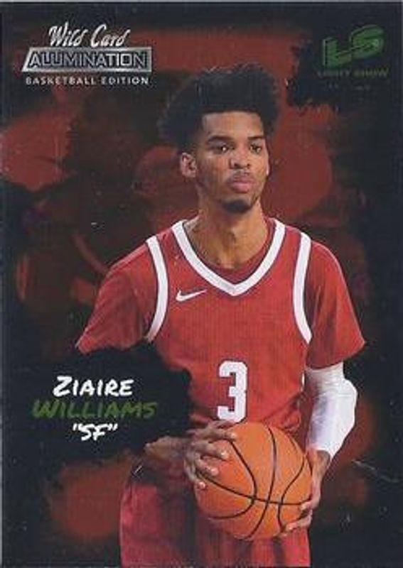 The Ziaire Williams 2021 Wild Card Alumination #LS-25 Light Show Red Rookie card is 1 of 494 Ziaire Williams' card variations in the 2021 Wild Card Alumination set being tracked by Sports Card Investor, including Base, 100 Stripe, 10 Stripe, 20 Stripe, and 50 Stripe.
