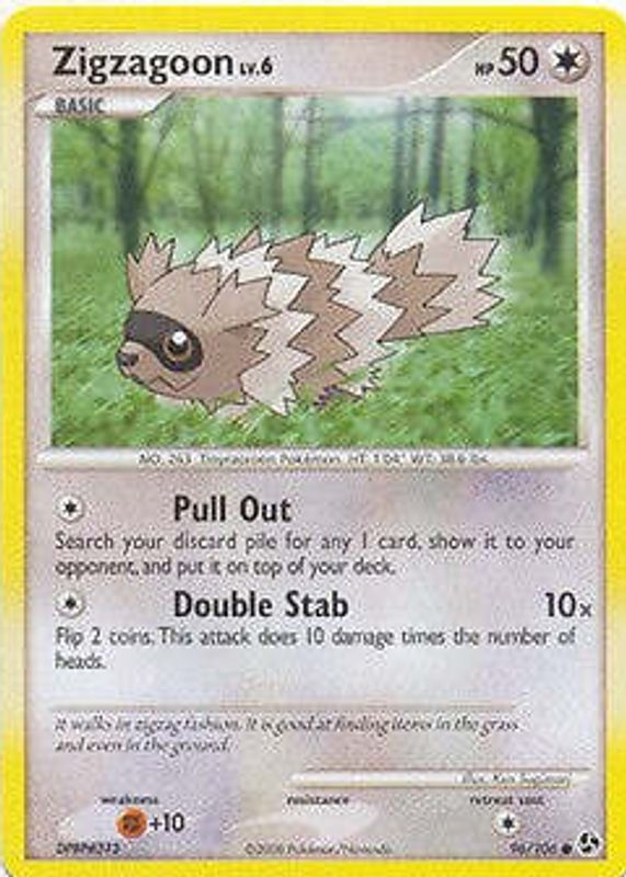 Zigzagoon 2008 Diamond & Pearl: Great Encounters #096/106 Base RAW TCG (LIGHTLY PLAYED) Price Guide