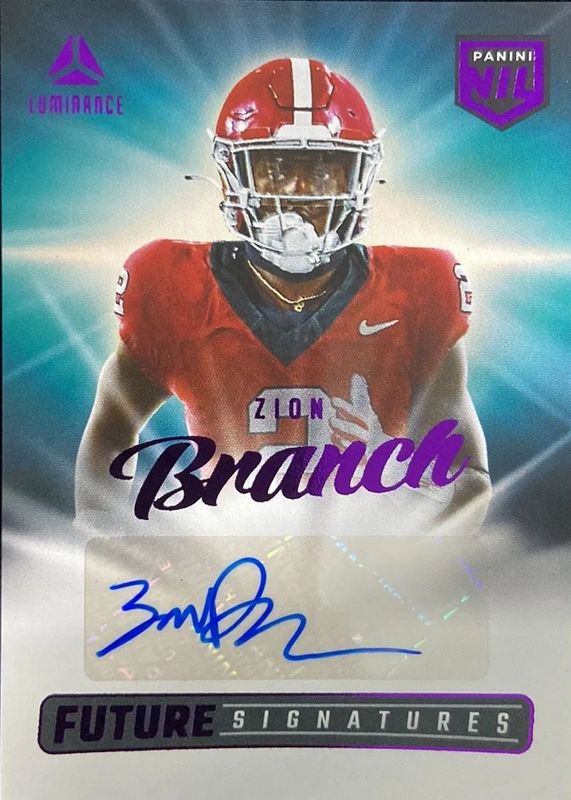 This card is 1 of 4 Zion Branch's card variations in the 2025 Luminance set being tracked by Sports Card Investor, including Future Signatures NIL, Future Signatures NIL - Green, and Future Signatures NIL - Red.
