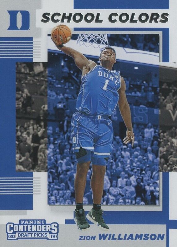 The Zion Williamson 2019 Contenders Draft Picks #1 School Colors Rookie card in Raw condition has not changed in price in the last 30 days and was last sold for $9.00 .