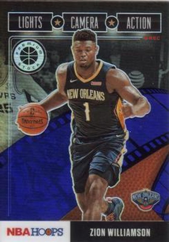 Zion Williamson 2019 Hoops Premium Stock #10 Lights Camera Action - Purple Rookie RAW Price Guide