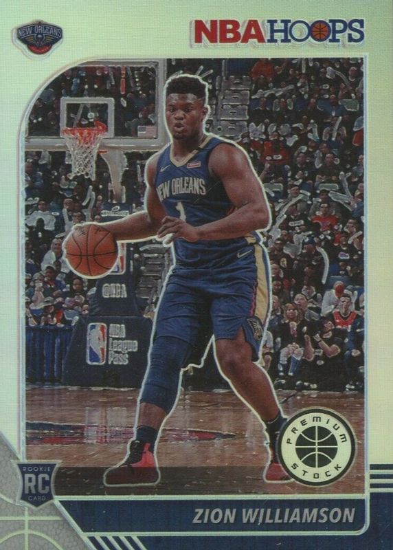 The Zion Williamson 2019 Hoops Premium Stock #258 Silver Rookie card in Raw condition has moved up $2.21 (+123%) in the last 30 days and was last sold for $4.00 .