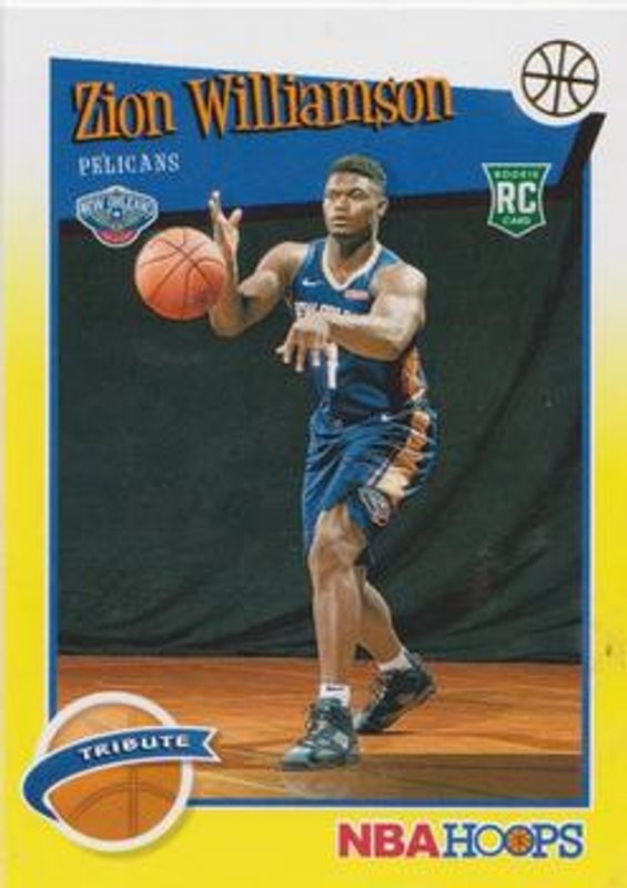 The Zion Williamson 2019 Hoops #296 Yellow Rookie card is 1 of 66 Zion Williamson's card variations in the 2019 Hoops set being tracked by Sports Card Investor, including #258 Base, #296 Base, #258 Premium Box Set /199, #296 Premium Box Set /199, and #258 Black Artist's Proof /1.