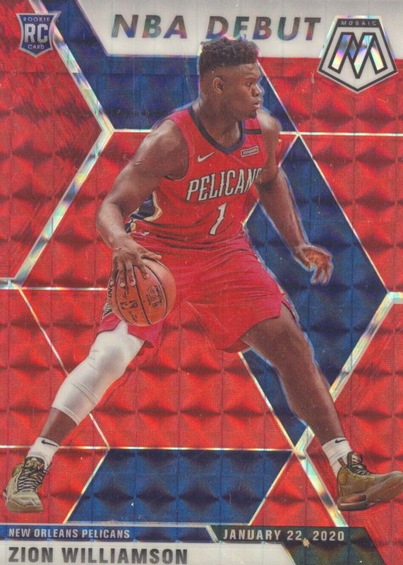 The Zion Williamson 2019 Mosaic #269 NBA Debut - Choice Fusion Red /88 Rookie card in Raw condition has not changed in price in the last 30 days and was last sold for $61.00 .